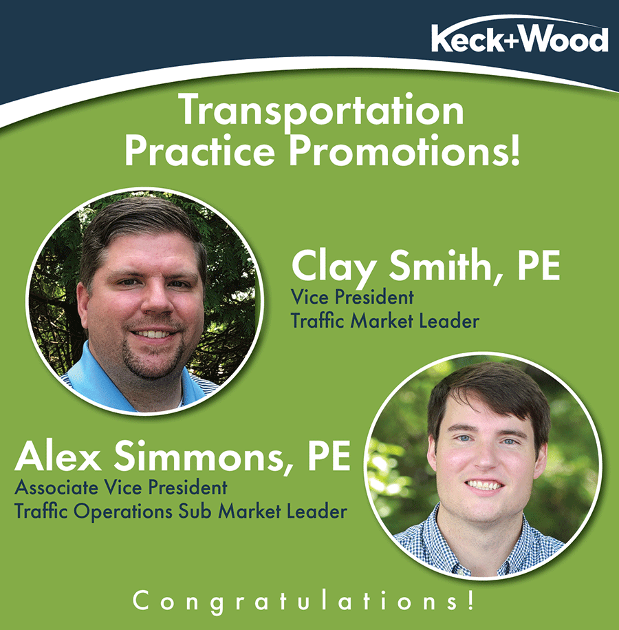 With the strong growth in our Transportation Practice, Keck + Wood is pleased to announce the promotions of Clay Smith, PE to