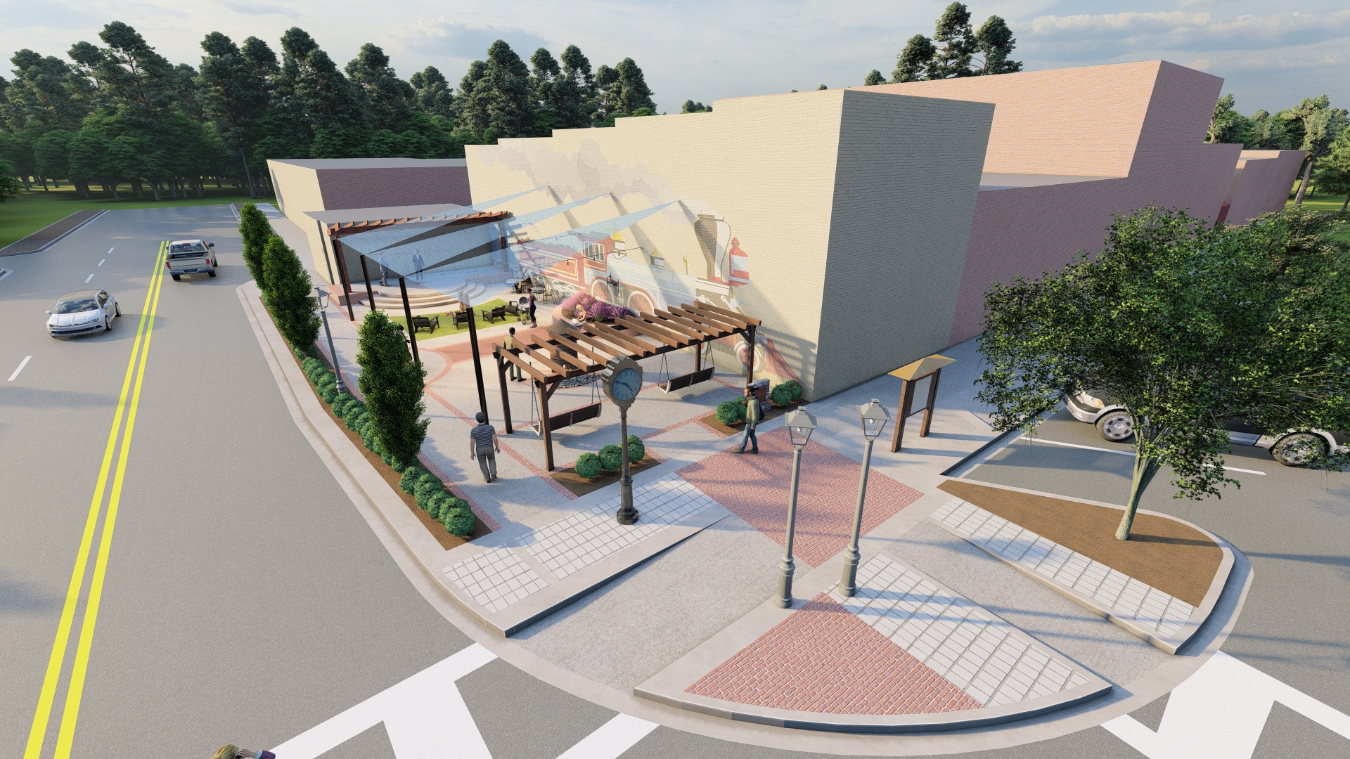Keck + Wood worked closely with the Town of Clover and the Main Street Director for the conceptual design and cost estimation of the downtown streetscape and pocket park design. The design included sidewalk improvements, pedestrian improvement, landscape improvements, and the revitalization of Centennial Park.