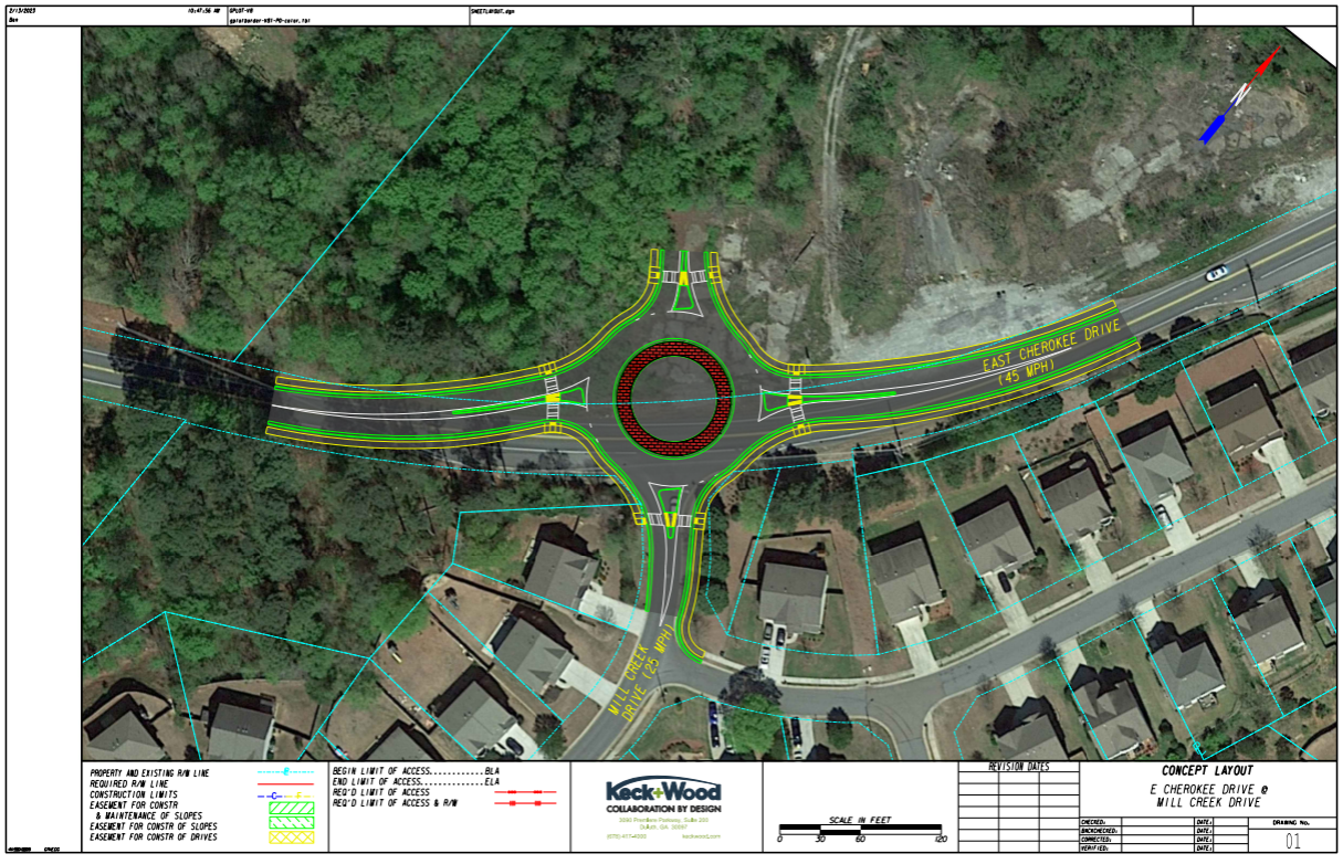 E. Cherokee Drive at Mill Creek Drive Roundabout